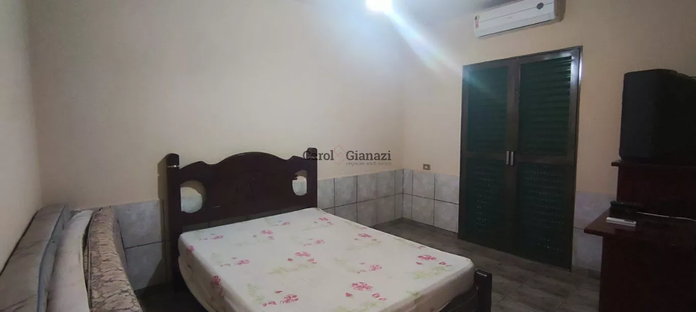 O rancho possui área construída de 120m² com um total de 5 dormitórios, sendo 3 suítes e o terreno possui uma área de 500,00 m². O imóvel é feito de alvenaria garantindo segurança e resistência. Além disso, conta com uma sala de jantar, sala de TV ,varanda e área de lazer com churrasqueira.