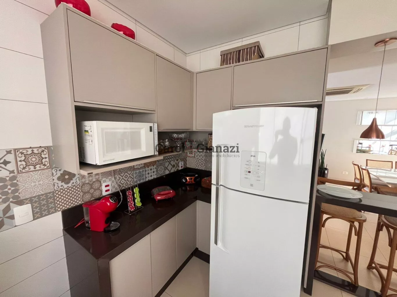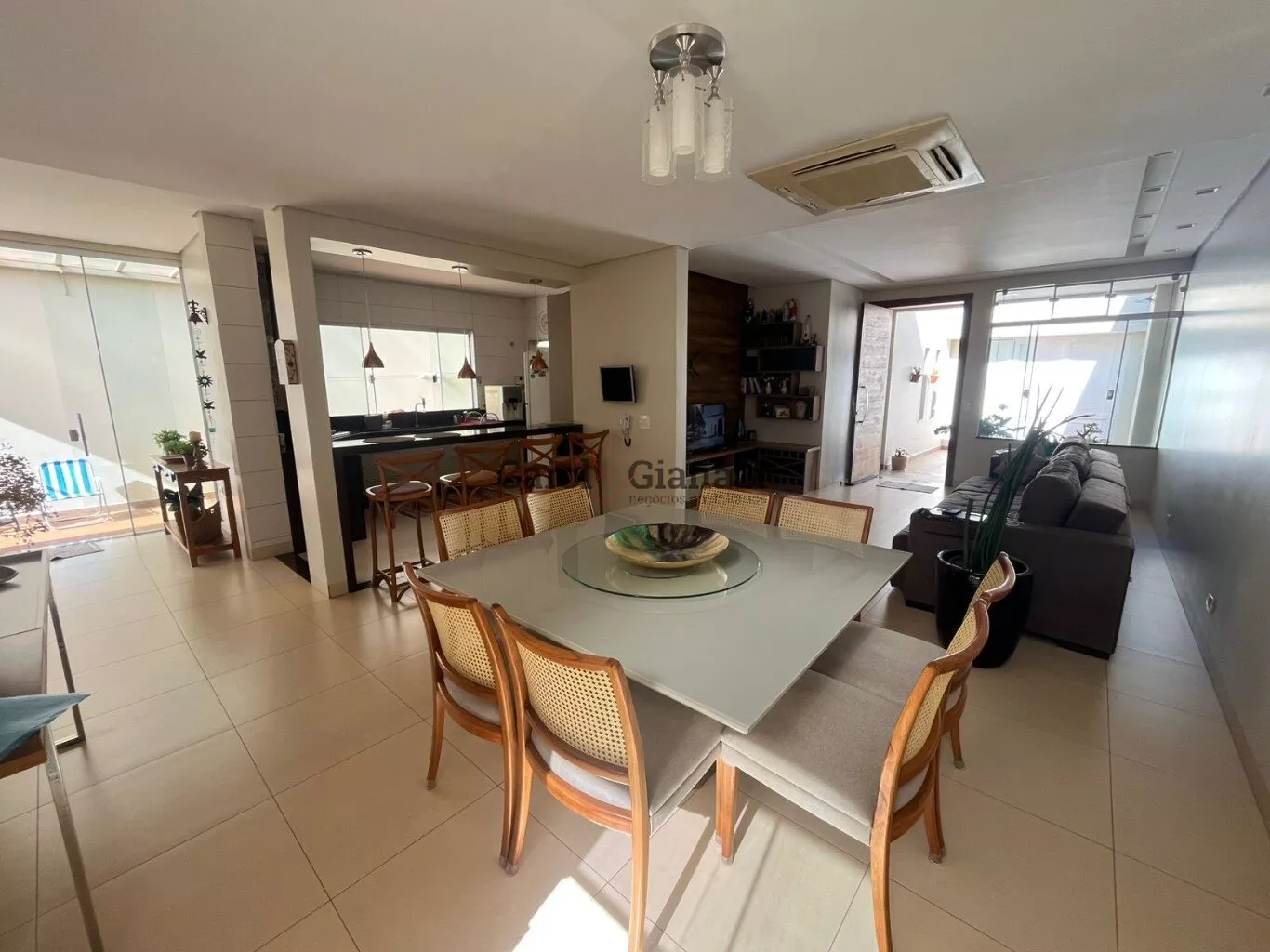 🔹 Cozinha integrada com sala de jantar e estar — tudo climatizado com ar-condicionado central